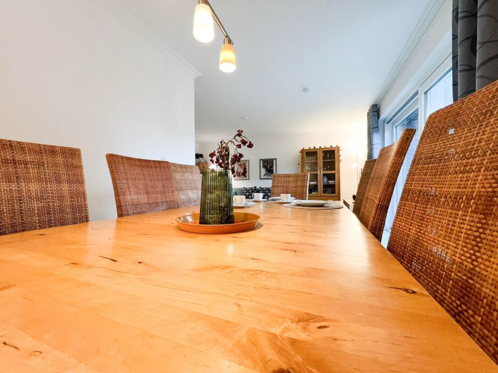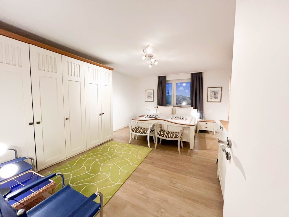 Herzlich willkommen im "Blaue Huis".Dies großzügige 4-Zimmer-Appartement fühlt sich fast wie ein Einzelhaus an. Das helle Wohn- und Esszimmer mit Kamin, ein Doppelschlafzimmer, vollausgestattete Extra-Küche und Duschbad befinden sich im Erdgeschoss. Die Süd-Terrasse mit Strandkorb bietet den perfekten Platz zum Entspannen. Im ruhigen Untergeschoss erwarten Sie zwei weitere Schlafzimmer, ein zweites Bad und die Luxus-Sauna. Die Lage zwischen Westerland und Wenningstedt ist ideal, nah zur Nordseeklinik und zum Strand. Ein Bäcker und Supermarkt sind um die Ecke.