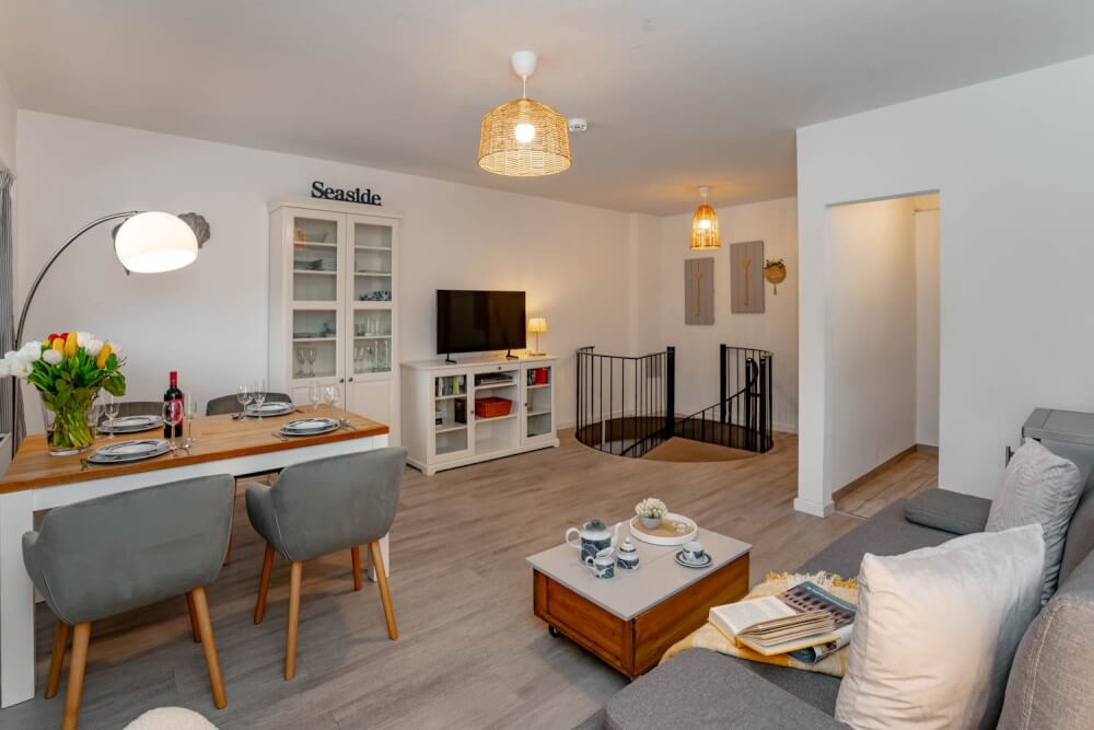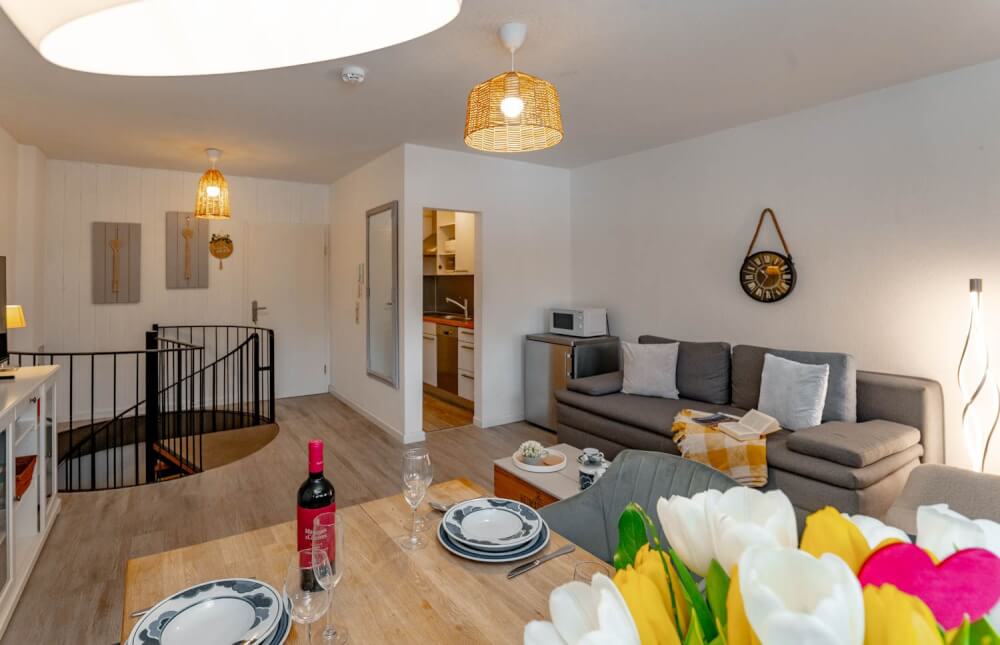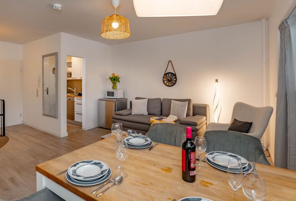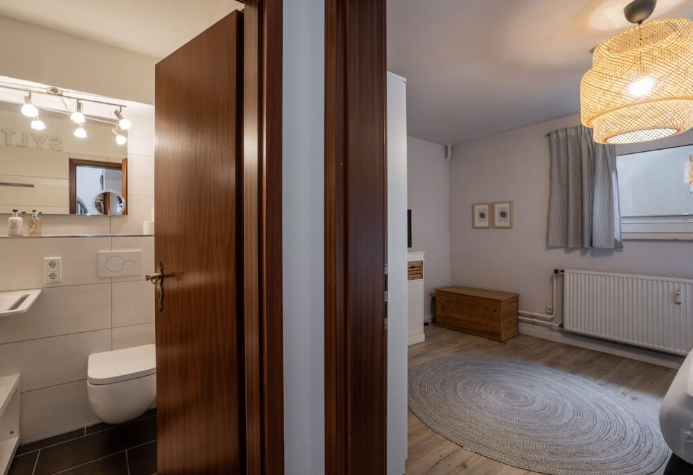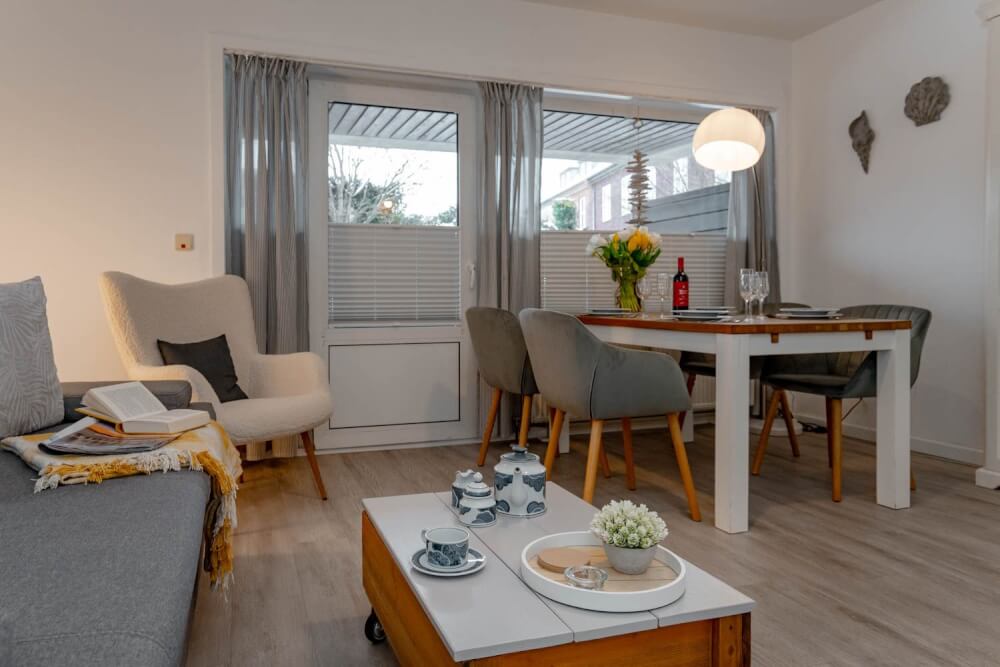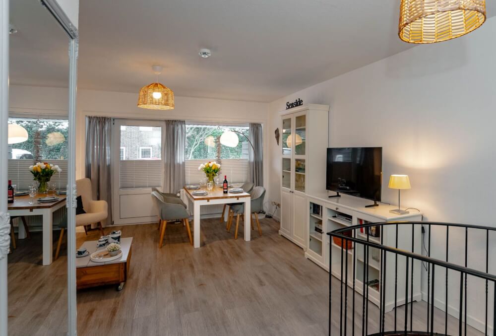 Sie suchen eine liebevoll eingerichtete 2-Zimmer-Ferienwohnung über zwei Ebenen, bei der es etwas mehr sein darf? Dann könnte das 50 Quadratmeter große Appartement "Hüs Wüf" genau das Richtige für Sie sein. Es liegt superzentral und ebenerdig in einem Appartementhaus nahe des Bahnhofs, also mittendrin und doch ruhig. Und als Extra gibt es im Haus auch noch ein Schwimmbad und eine Sauna (gegen Gebühr).
