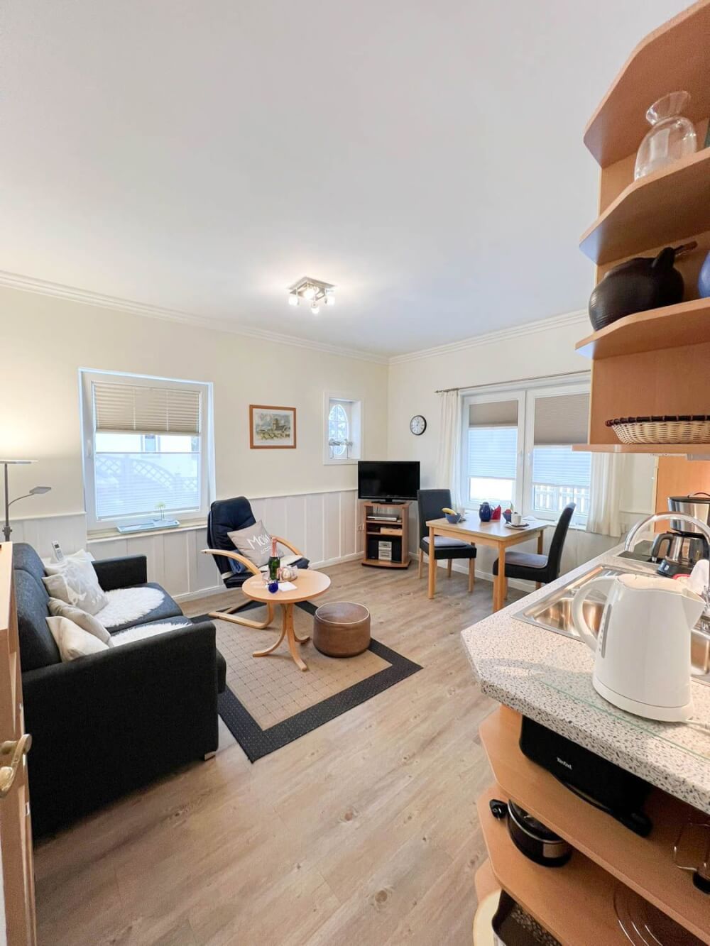 Die Friedrichstraße um die Ecke, der Strand nur zwei Straßen weiter: Im Herzen von Westerland finden Sie die ebenerdige Wohnung "Süden" im Haus Schulz. Das Haus Schulz ist ein kleines Familienhaus mit drei Partien, welches im Jahr 2016 komplett saniert und renoviert wurde. Ein Gemeinschaftsgarten steht Ihnen vor dem Haus zur Verfügung. Die Wohnung ist mit circa 35 Quadratmetern relativ klein, aber superpraktisch für unkomplizierte Ferien und mit allem ausgestattet, was man so braucht.